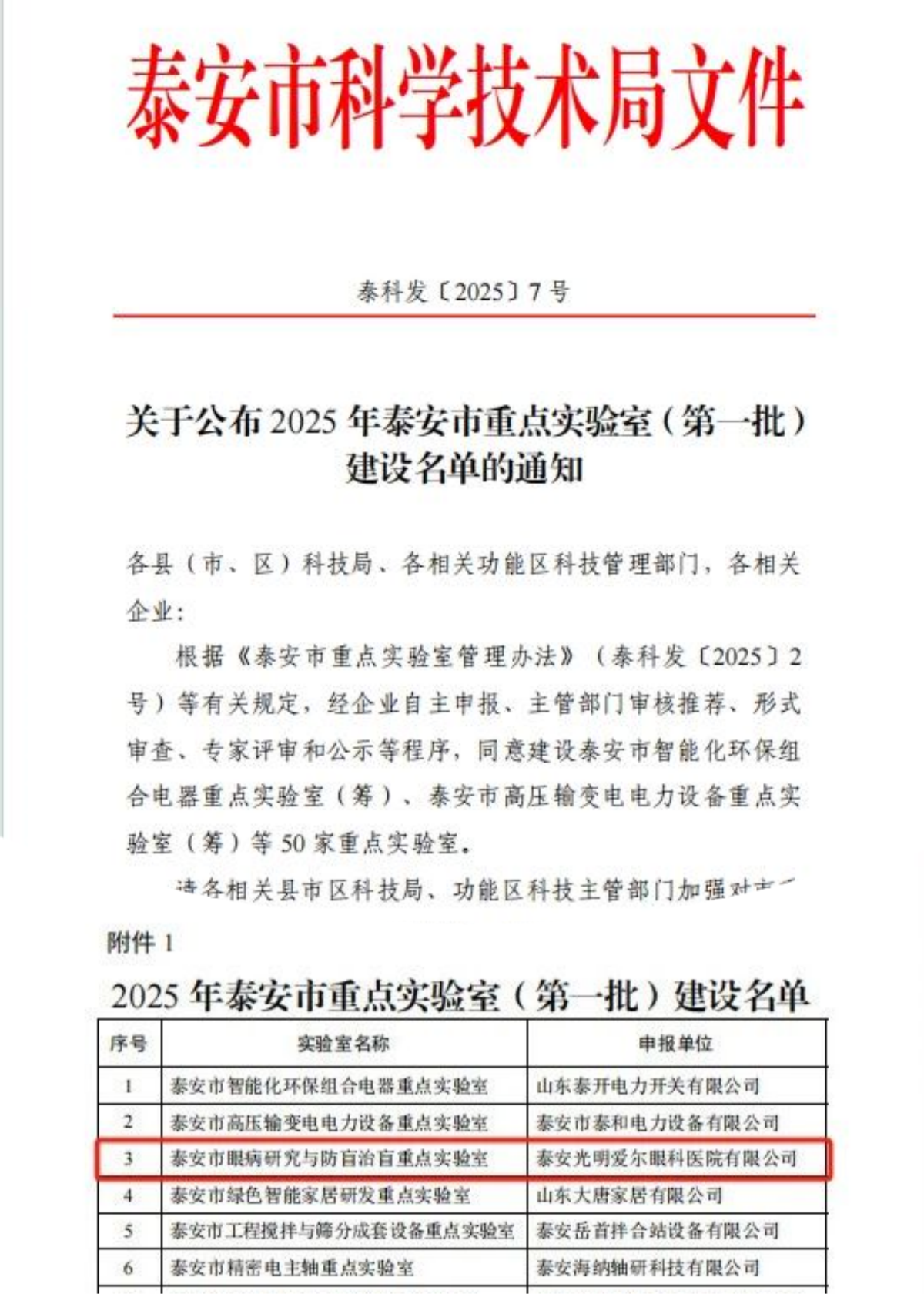 ? ? ? ? 近日,泰安市科學(xué)技術(shù)局公布2025年泰安市重點(diǎn)實驗室(第一批)建設(shè)名單的通知,我院眼病研究與防盲致盲重點(diǎn)……